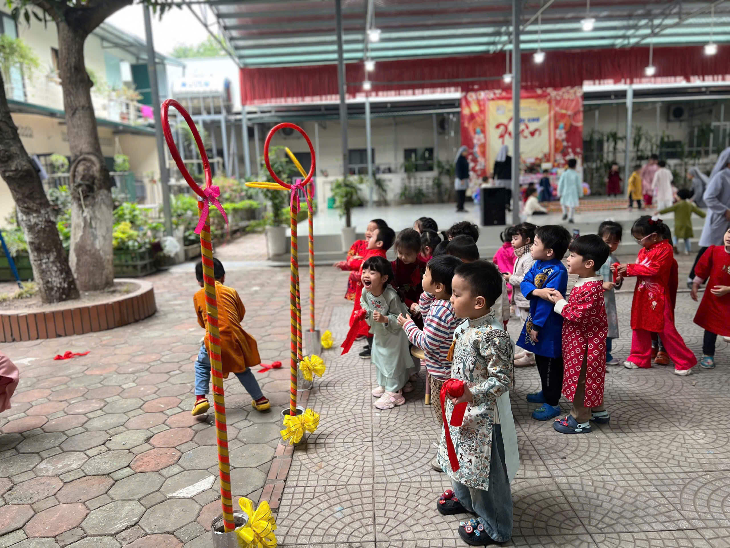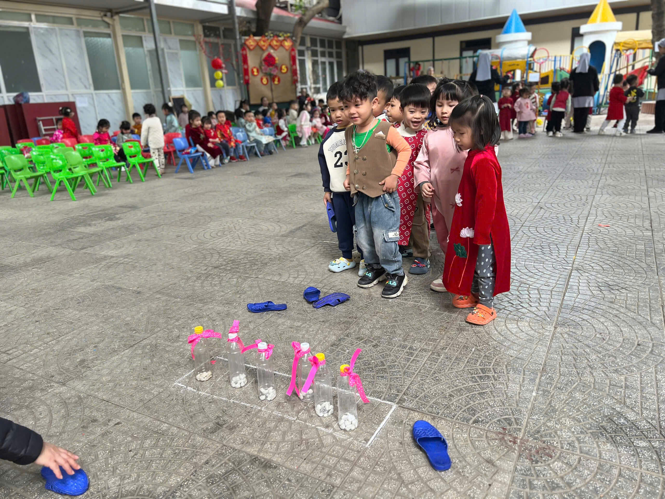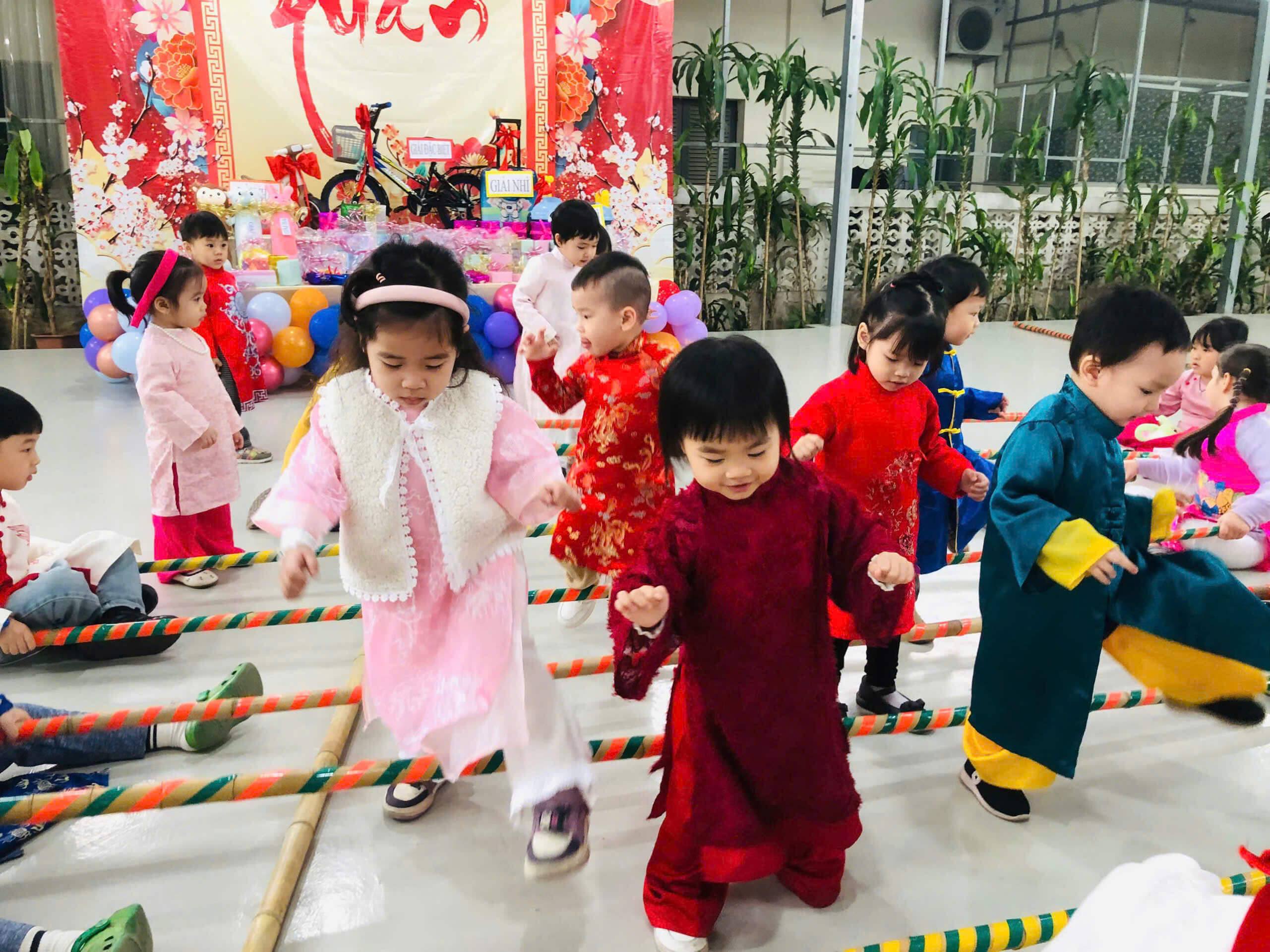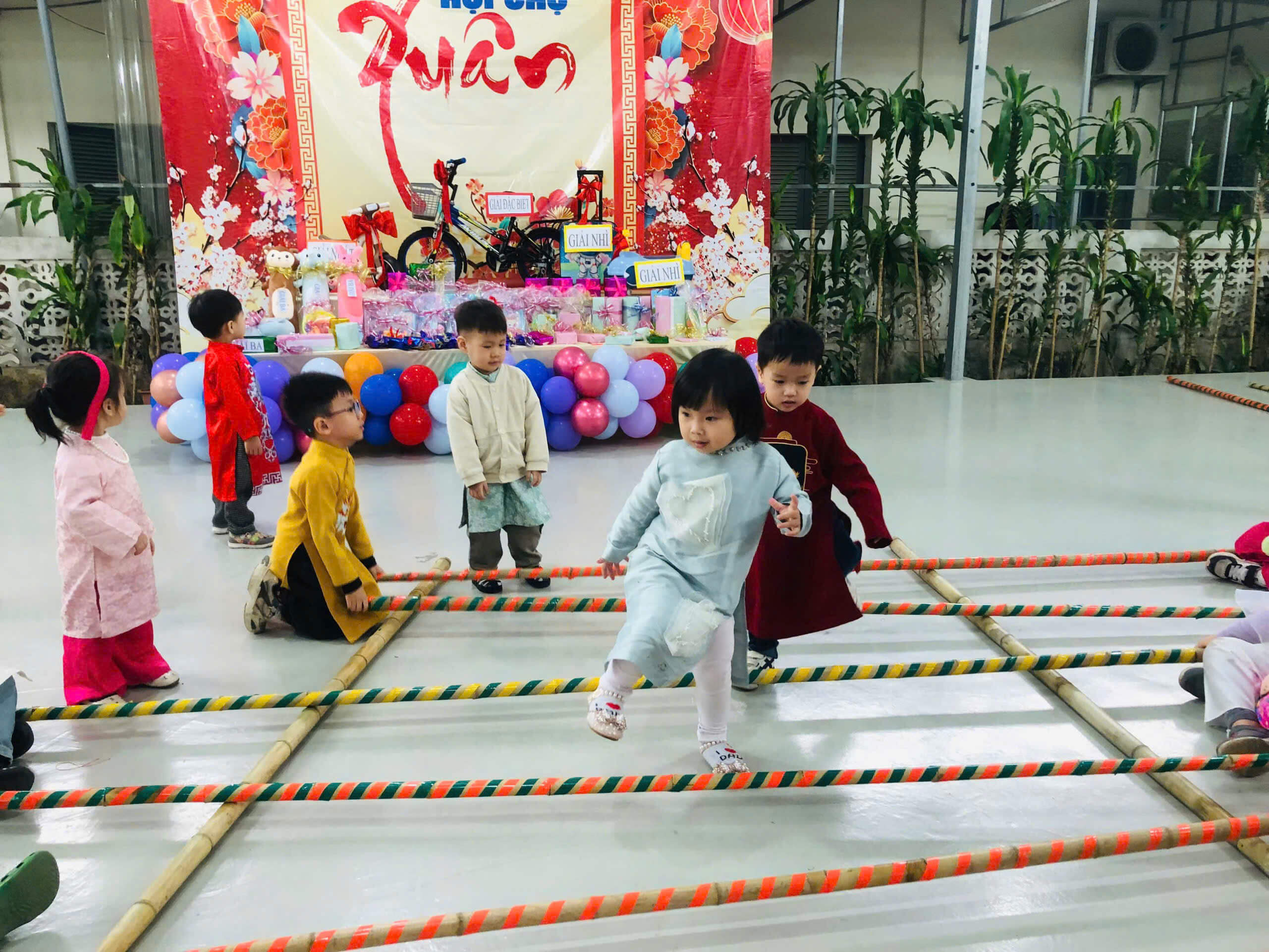 Buổi chiều , các con cùng biểu diễn văn nghệ “Chào Xuân” , cùng chơi trò chơi “Số gì đây ? ” với nhiều giải thưởng hấp dẫn , được trải nghiệm cùng  bố mẹ đi chợ mua sắm tại các gian hàng ẩm thực tết theo mong muốn của mình…nên các con rất vui tươi và hớn hở.