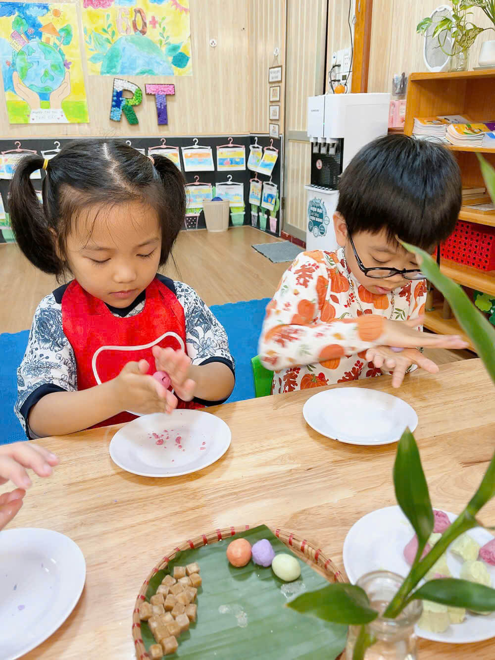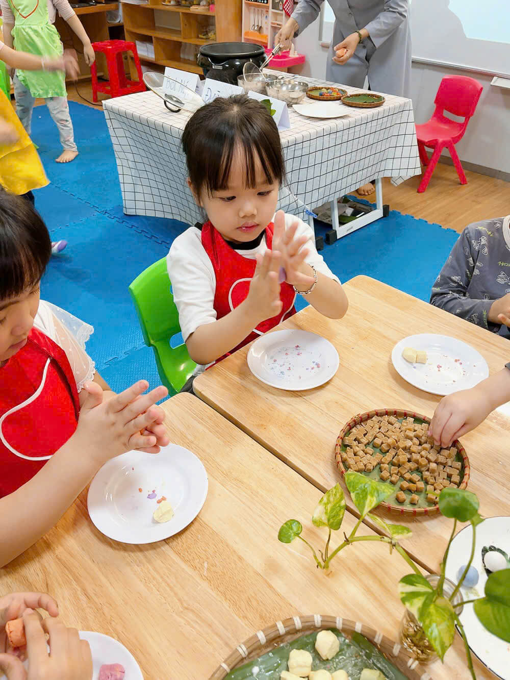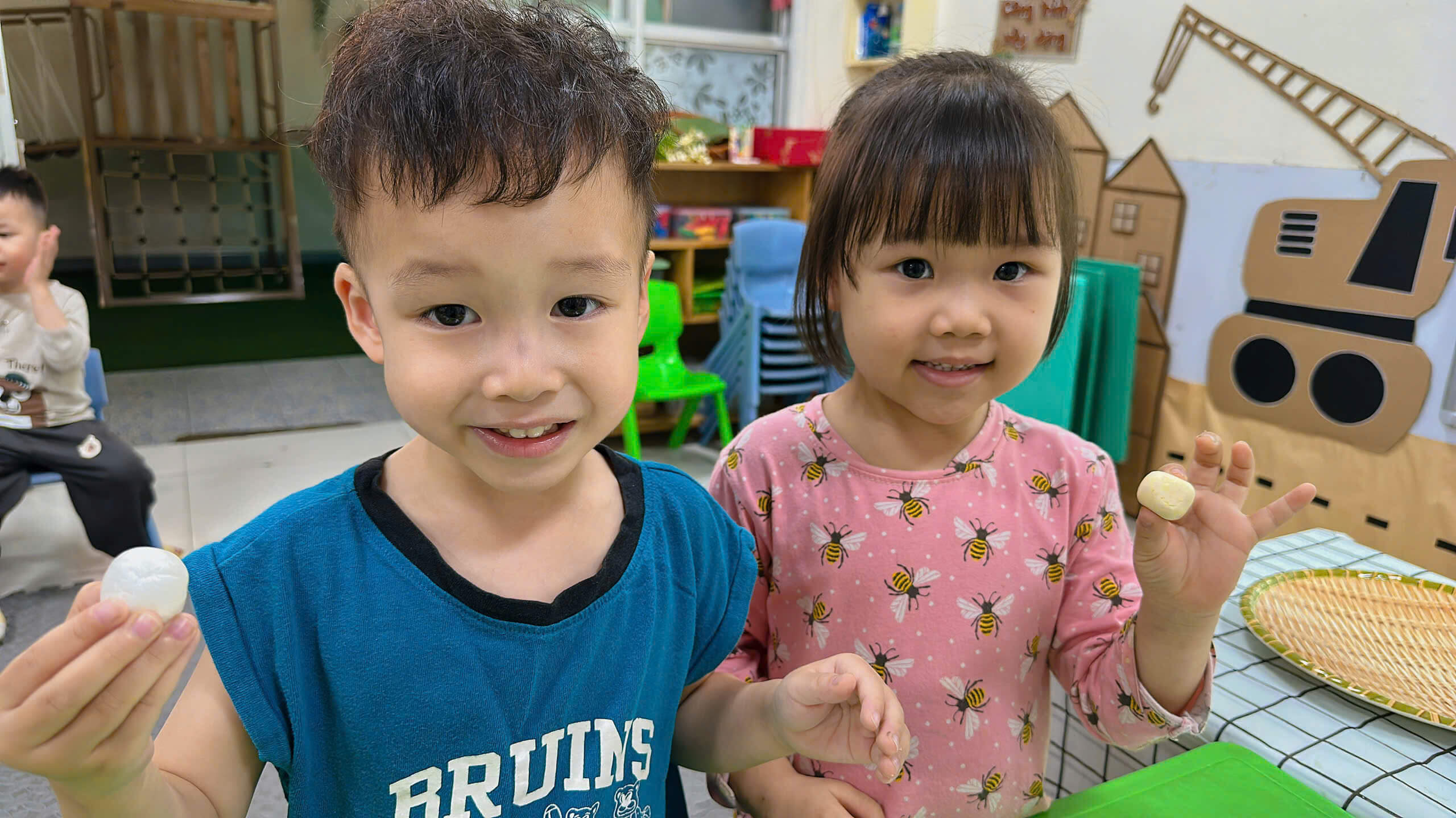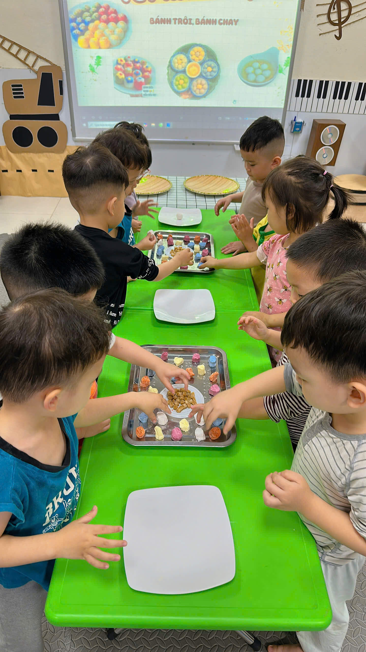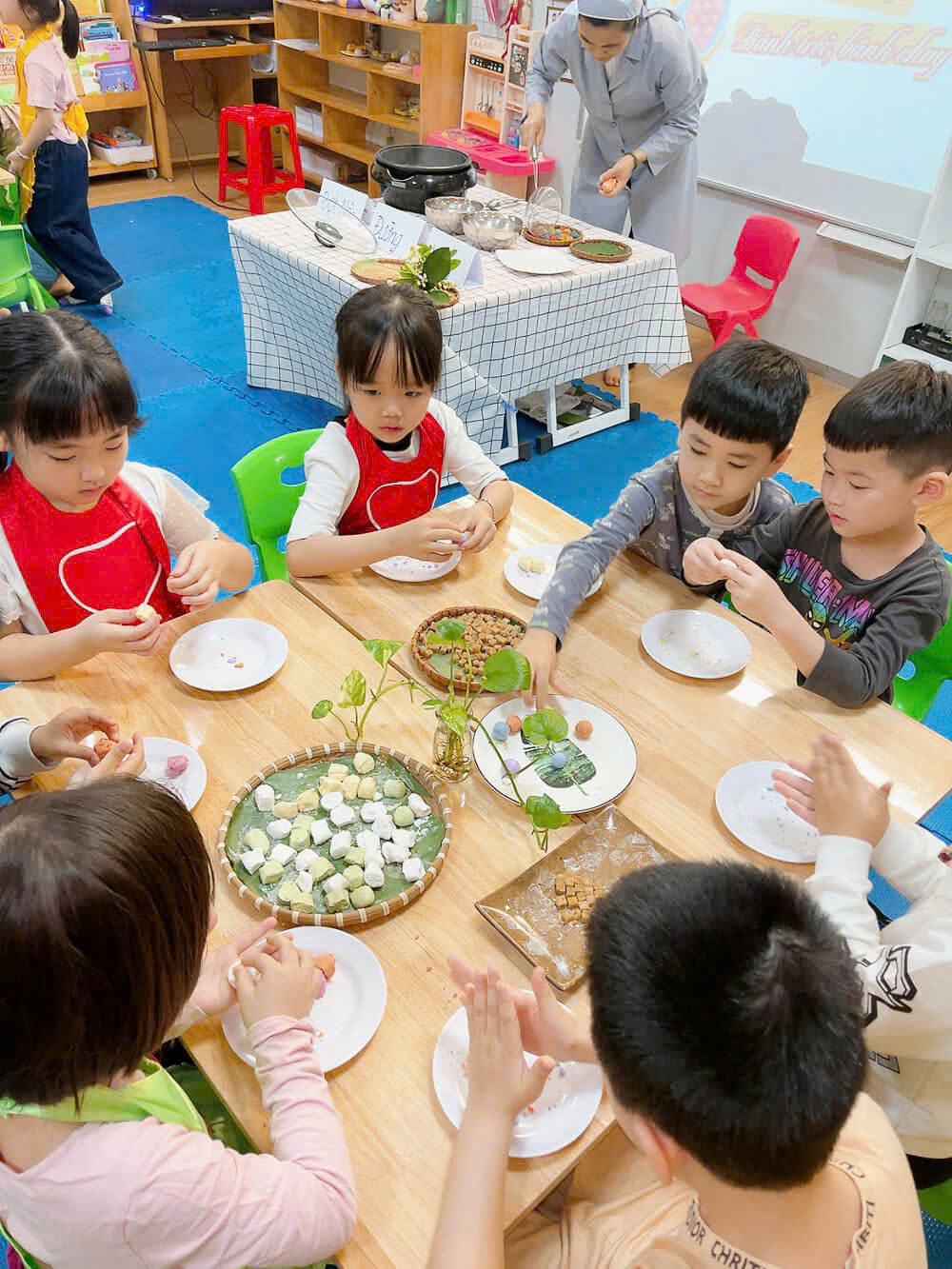 Không khí lớp học trở nên rộn ràng với tiếng cười nói vui vẻ. Những viên bánh tròn xinh xắn được nặn từ những đôi bàn tay đáng yêu của bé, được bé nâng niu và trân trọng biết bao vì đó chính là thành quả lao động miệt mài của các bé. Sau khi nặn xong, các cô giáo sẽ luộc bánh trôi trong nồi nước sôi. Khi những viên bánh nổi lên, các bé vô cùng phấn khích, háo hức chờ đợi để được thưởng thức thành quả của mình,các bé thêm hứng khởi và vui tươi hơn.