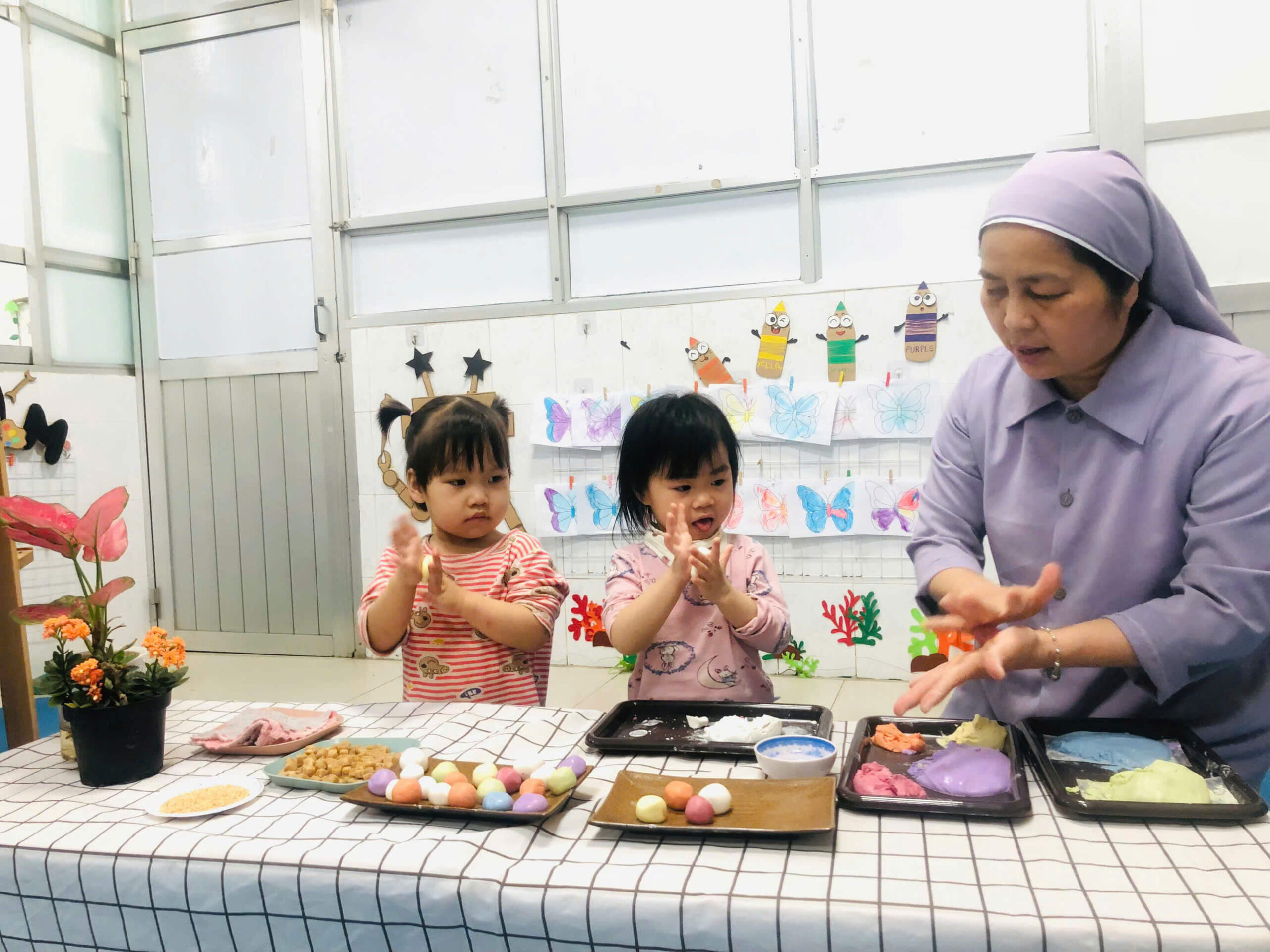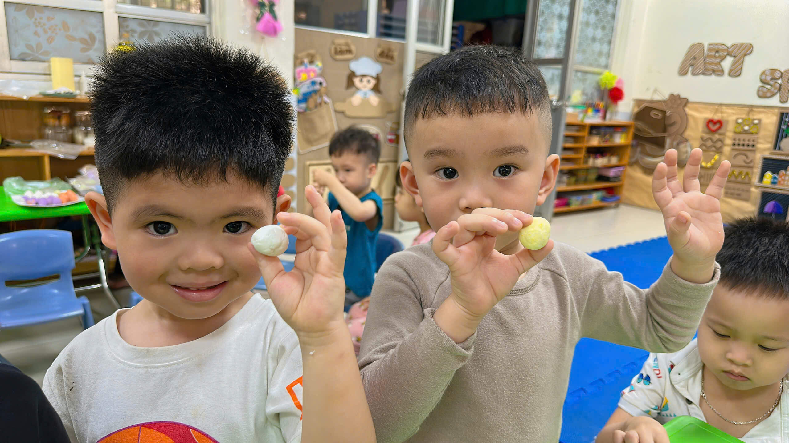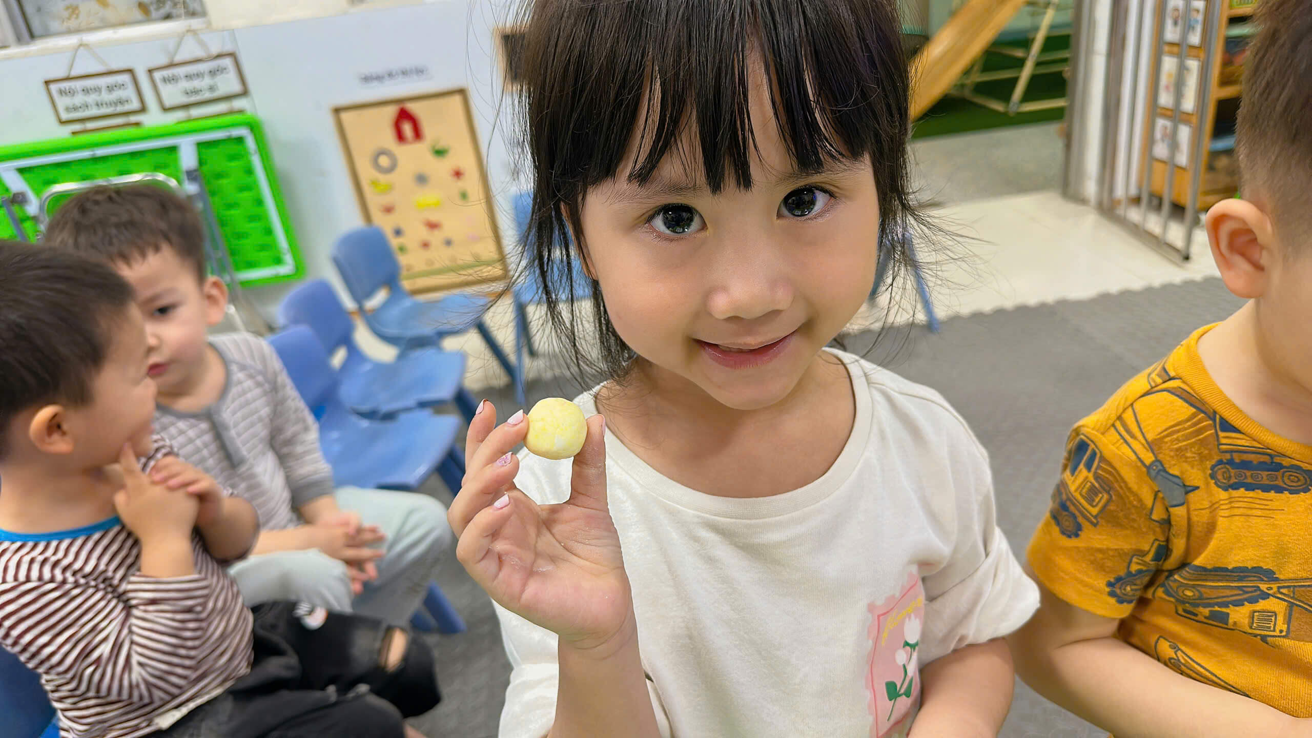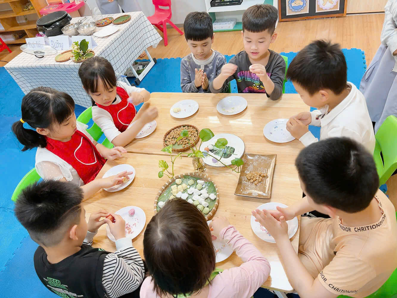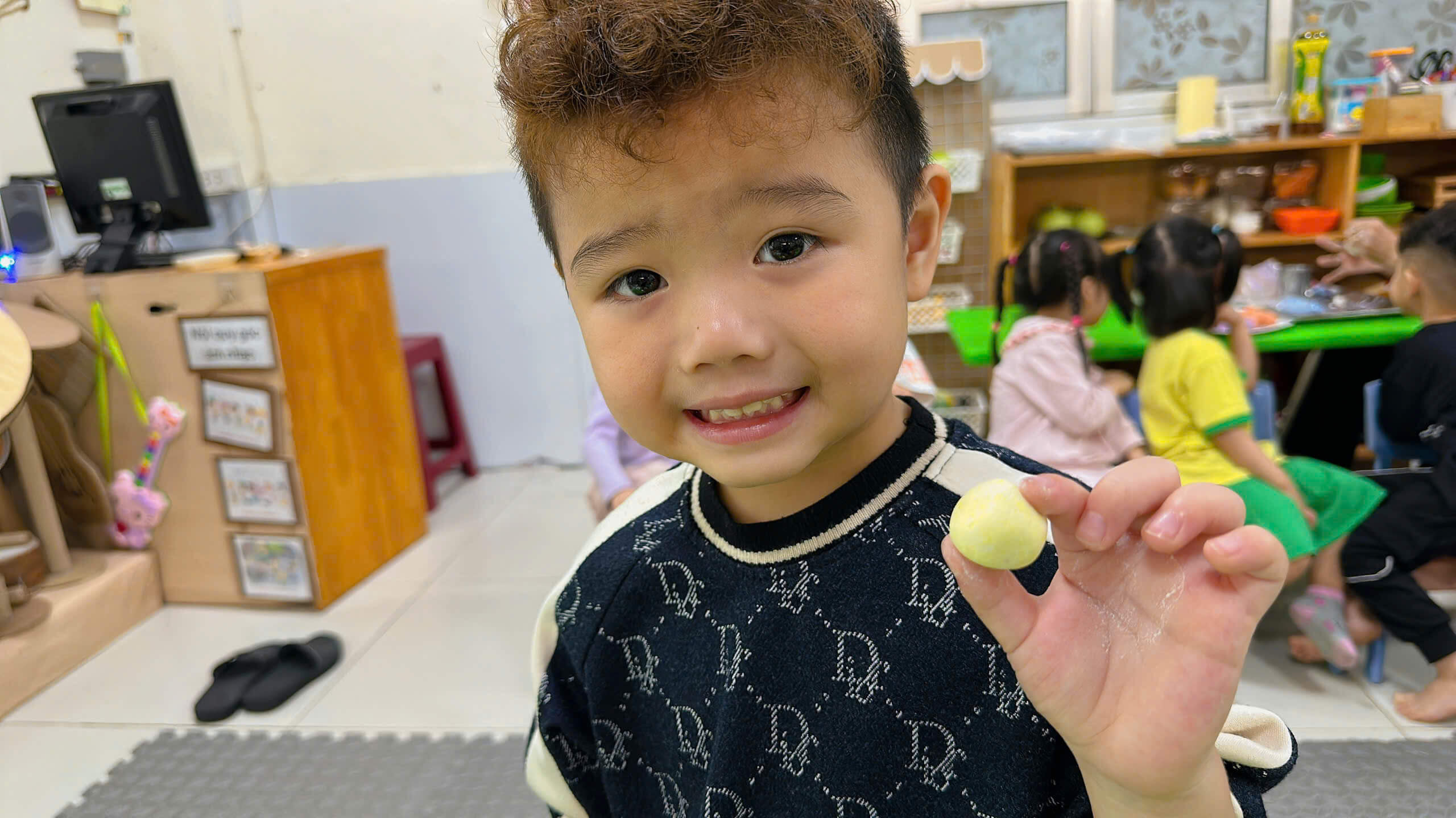 Không khí lớp học trở nên rộn ràng với tiếng cười nói vui vẻ. Những viên bánh tròn xinh xắn được nặn từ những đôi bàn tay đáng yêu của bé, được bé nâng niu và trân trọng biết bao vì đó chính là thành quả lao động miệt mài của các bé. Sau khi nặn xong, các cô giáo sẽ luộc bánh trôi trong nồi nước sôi. Khi những viên bánh nổi lên, các bé vô cùng phấn khích, háo hức chờ đợi để được thưởng thức thành quả của mình,các bé thêm hứng khởi và vui tươi hơn.